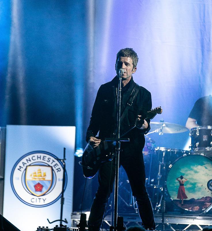 Noel fue uno más de los jugadores saltando y cantando Wonderwall como celebración por el sexto título de liga alcanzado por el equipo.