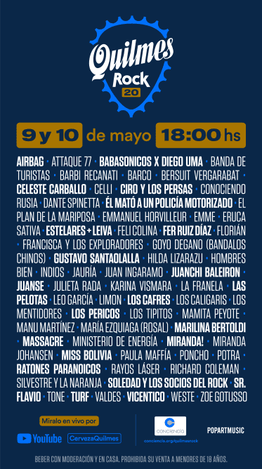 Pará esta edición participarán más de 50 artistas entre los que se encuentran Vicentico, Los Pericos, Ataque 77, Babasonicos, Gustavo Santaolalla, Los Cafres, Bersuit Bergarabat, entre varios más.